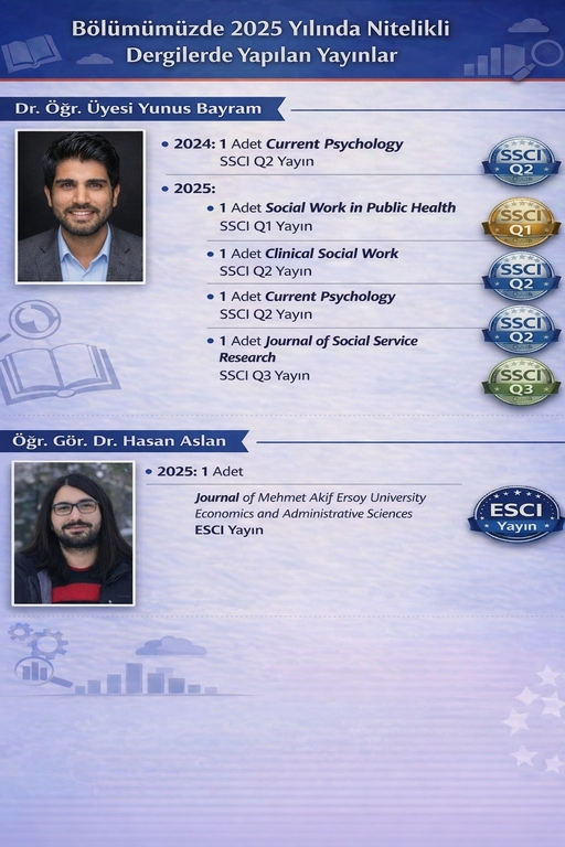 Başta 2025 yılındaki çalışmalarıyla bu başarıya imza atan hocalarımız Dr. Öğr. Üyesi Yunus Bayram ve Öğr. Gör. Dr. Hasan Aslan olmak üzere emeği geçen tüm öğretim elemanlarımızı tebrik ediyor, bilimsel katkılarının artarak sürmesini diliyoruz.
